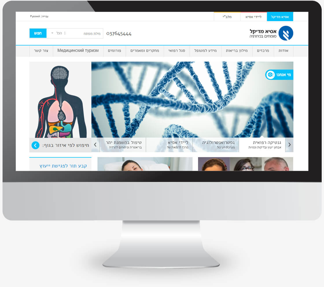 "אסיא מדיקל" זהו המרכז לכירורגיה ורפואה התערבותית. האתר נבנה על בסיס עיצוב של סטודיו "לוליין".
