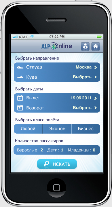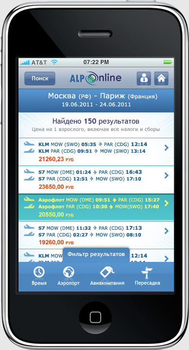 אפליקציה לאייפון "AlpTravel" המאפשרת למשתמשים לחפש, להשוות ולהזמין כרטיסי טיסה לכל היעדים בעולם.